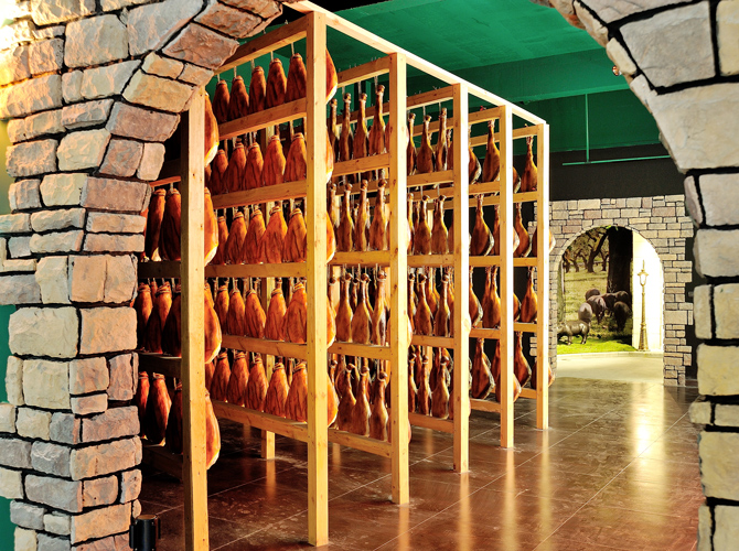 世界火腿博覽館是一個(gè)以世界火腿為主題的博覽館,用歷史-地域-工藝-文化為線(xiàn)索,通過(guò)展板、照片、聲光和布景等手法,翔實(shí)介紹了中國(guó)金華火腿、西班牙伊比利亞火腿、意大利帕爾瑪火腿、法國(guó)科西嘉火腿和巴黎火腿、美國(guó)的鄉(xiāng)村火腿等世界知名火腿的歷史人文,消費(fèi)習(xí)俗、制作工藝、火腿美食等。