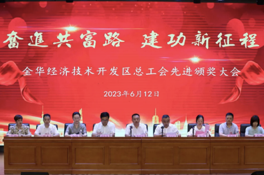日前,6月12日下午,金華開發(fā)區(qū)總工會在李漁小學(xué)報告廳召開“奮進(jìn)共富路,建功新征程”先進(jìn)頒獎大會。經(jīng)申報、推薦、審查、評審和公示等環(huán)節(jié),我單位陳順通、姜濤二位員工榜上有名。生產(chǎn)副總監(jiān)陳順通被授予2023年度“八婺金匠”榮譽稱號,生產(chǎn)副總監(jiān)姜濤被授予2023年“金開工匠” 榮譽稱號。