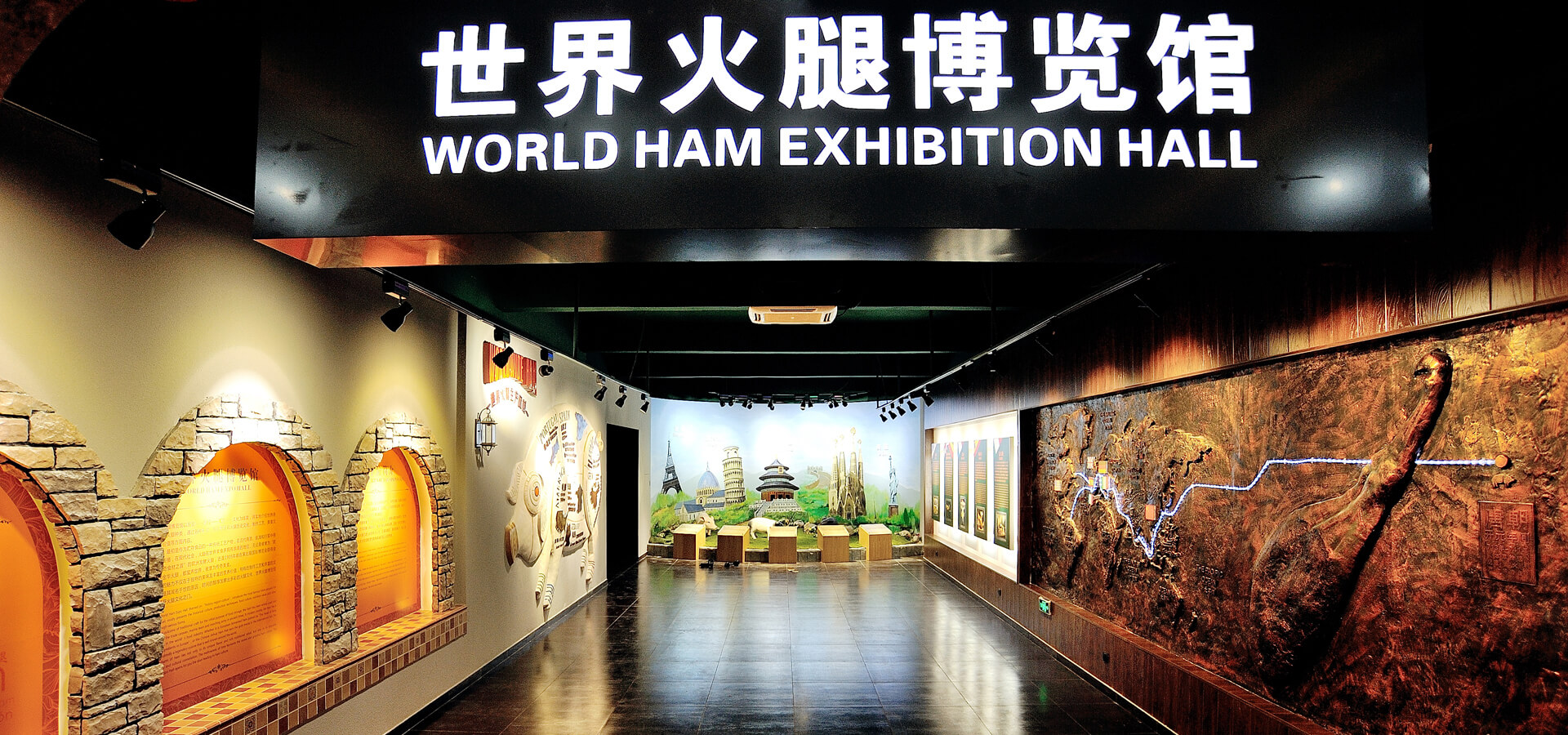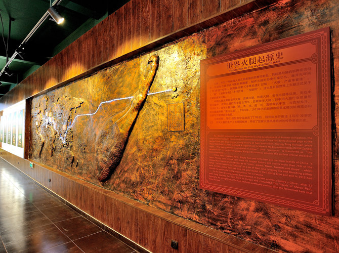 世界火腿博覽館是一個(gè)以世界火腿為主題的博覽館,用歷史-地域-工藝-文化為線(xiàn)索,通過(guò)展板、照片、聲光和布景等手法,翔實(shí)介紹了中國(guó)金華火腿、西班牙伊比利亞火腿、意大利帕爾瑪火腿、法國(guó)科西嘉火腿和巴黎火腿、美國(guó)的鄉(xiāng)村火腿等世界知名火腿的歷史人文,消費(fèi)習(xí)俗、制作工藝、火腿美食等。