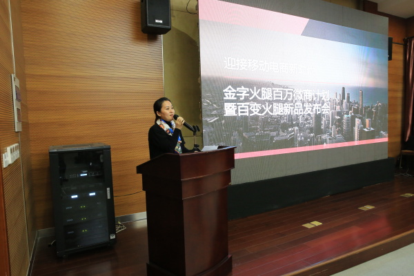 發(fā)布會上,金字火腿總經(jīng)理吳月肖與現(xiàn)場領(lǐng)導、嘉賓分享了金字火腿這些年在互聯(lián)網(wǎng)電商領(lǐng)域探索和前進的步伐。有專家說2015是微商崛起元年,移動電商全面爆發(fā)之年。從一組數(shù)據(jù)便可看出端倪:中國第三方移動支付市場交易規(guī)模從2014年的59924.7億元 到2015年僅第2季度34746億元人民幣的驚人增長,剛剛結(jié)束的天貓雙十一狂歡節(jié),一天的成交額就達到912億,其中移動端交易額626億元,占比為68%。