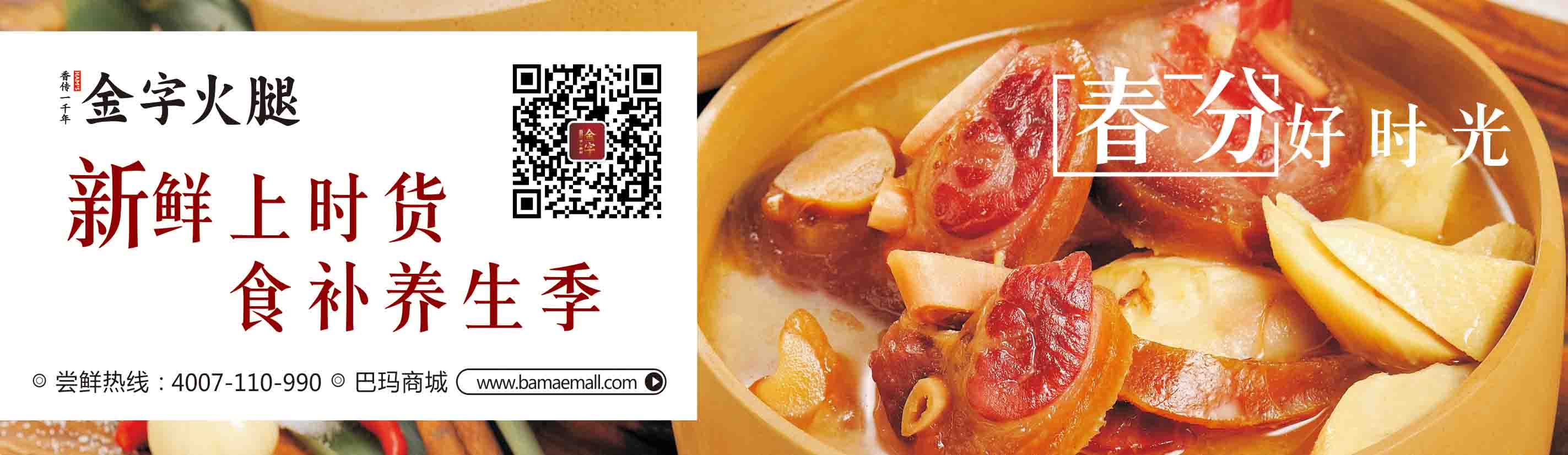 春分之后,竹筍一天一天長高,到清明時肉質(zhì)開始變老,食之漸漸無復(fù)初筍之鮮嫩口感。而待到“江南四月櫻桃紅,筍芽出土千萬叢”時,則筍期已過,再欲嘗鮮筍之美味,只好更待明年了。其實(shí)“腌篤鮮”可以引申成一種烹調(diào)的手法:火腿咸肉與新鮮肉類的合烹。類似的代表作有很多:咸肉燉蹄髈,火腿蒸鱔魚等等。金字三月新腿上架,備一條火腿,過了季節(jié),用火腿做點(diǎn)其他時令的“腌篤鮮”美食是一個不錯的選擇。